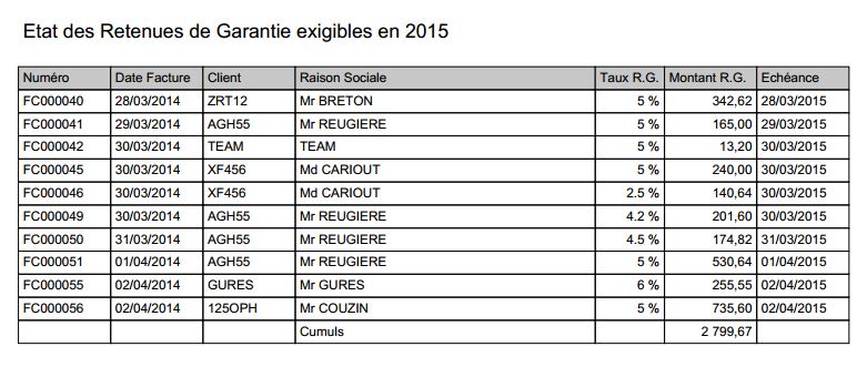 Enfin vous avez un état qui vous permet de voir toutes les factures ayant fait l’objet d’une retenue de garantie avec leur date d’échéance